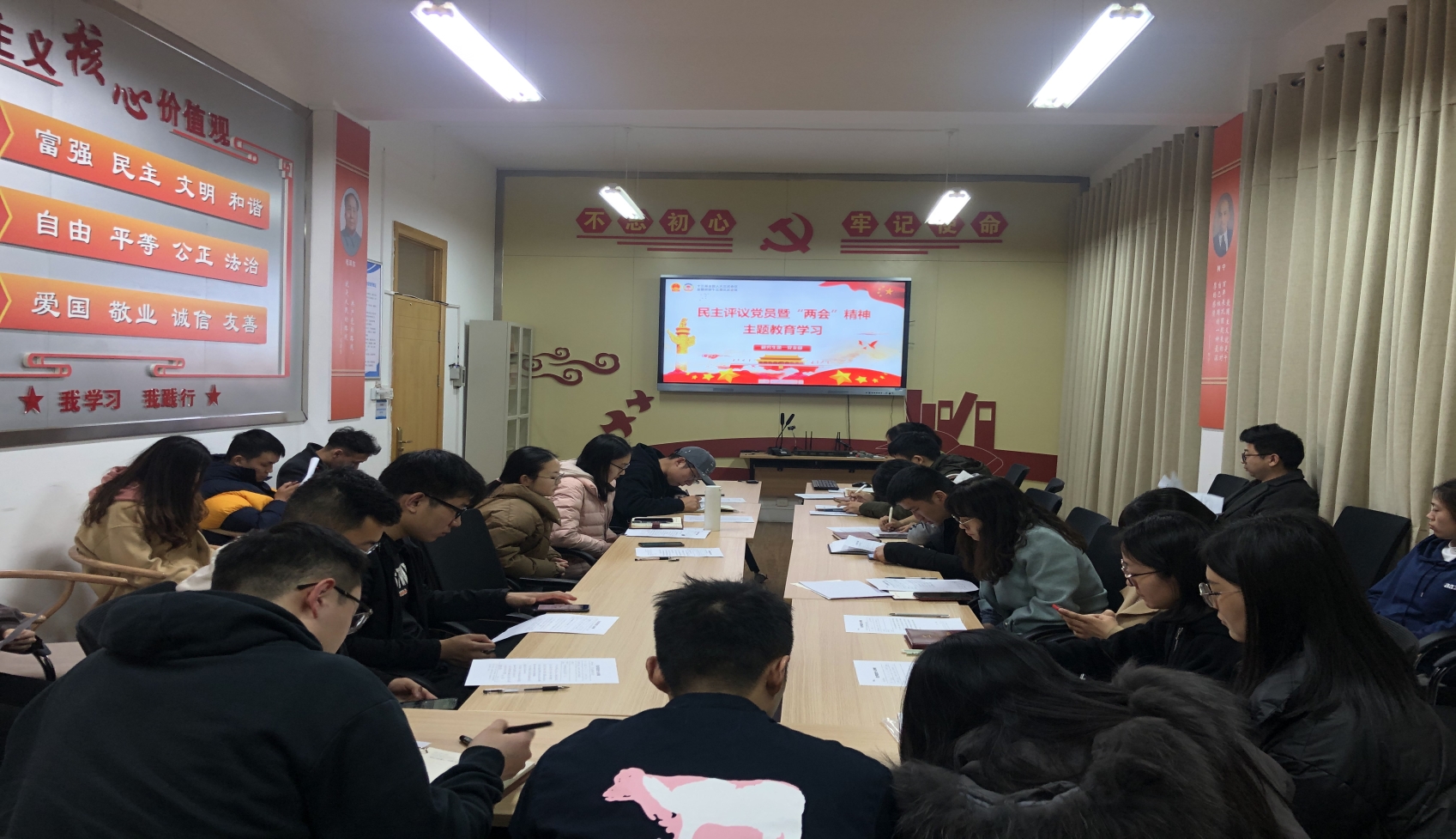 为认真学习和贯彻两会精神,提高党员的政治修养和素质,3月9日晚,赛马会六合彩 研究生第一党支部在赛马会六合彩 401会议室组织学习“两会精神”。