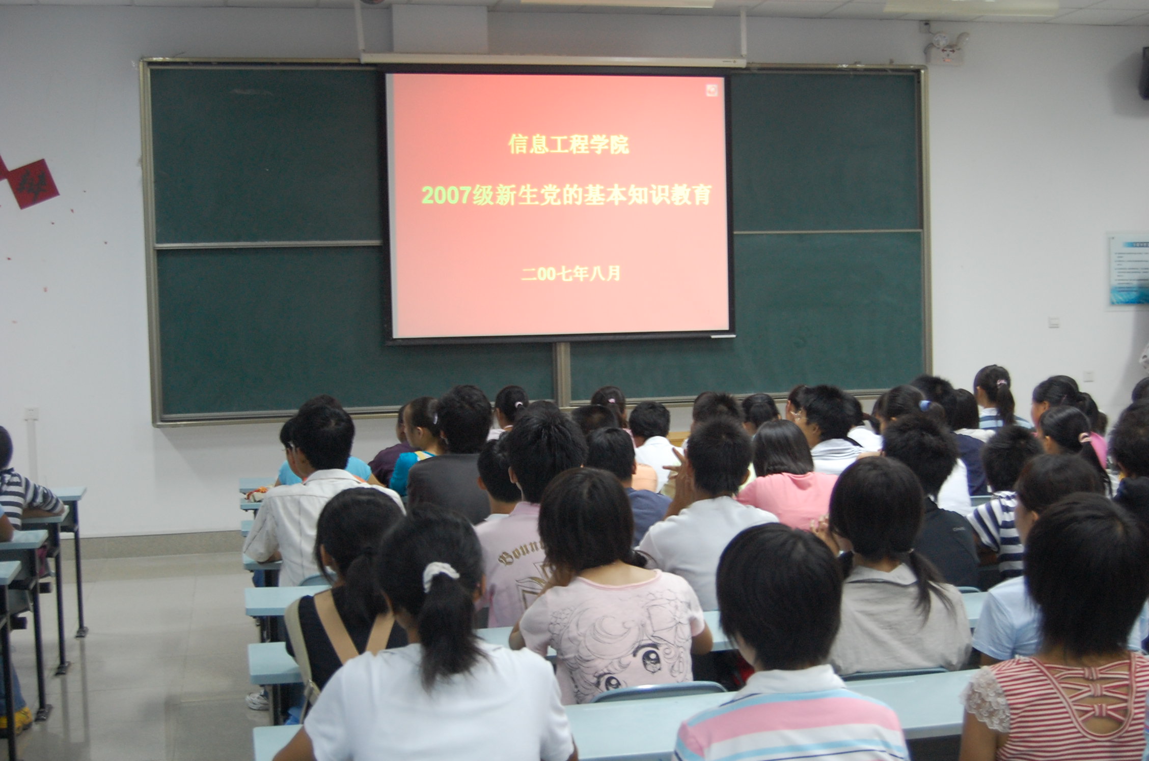 8月28日上午,赛马会六合彩 党委对2007级新同学进行了党的基本知识教育。赛马会六合彩 党务秘书刘桂玲老师针对党的性质、指导思想、基本路线及党的宗旨等作了介绍,并对大学生如何积极向党组织靠、如何端正入党动机、如何写入党申请书等内容作了详细讲解。