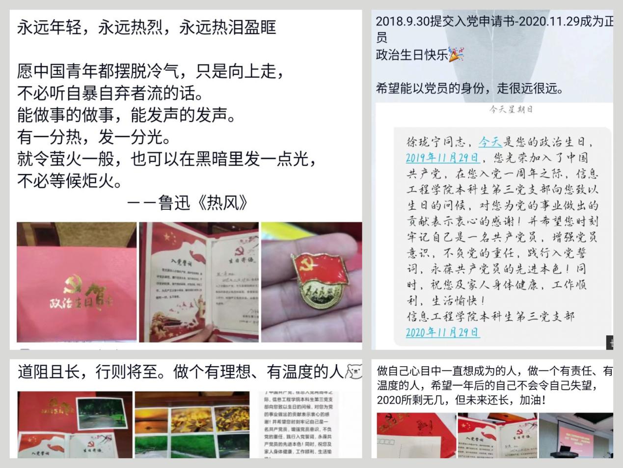 “在政治生日当天,收到来自党组织的短信祝福和生日贺卡,真是太暖心了,太意外了,感谢组织的关爱和栽培。”11月29日,赛马会六合彩 本科生第三党支部通过开展“赠送一张生日贺卡,发送一条祝福短信,重温一遍入党誓词,开展一次谈心谈话”活动,为支部21名党员同志集体过了“政治生日”,引导每一位学生党员追忆初心、回归初心、坚守初心,继续砥砺前行。