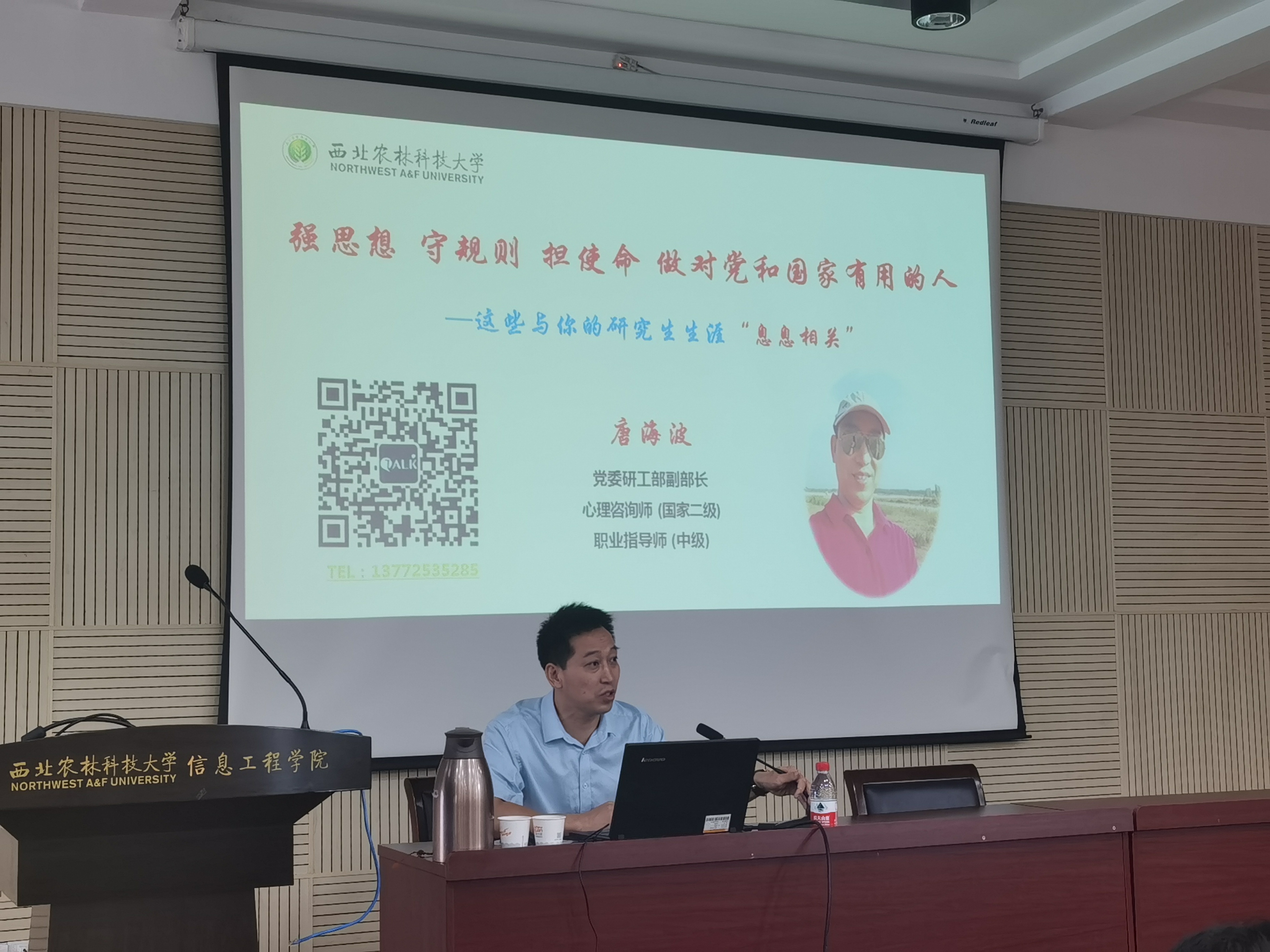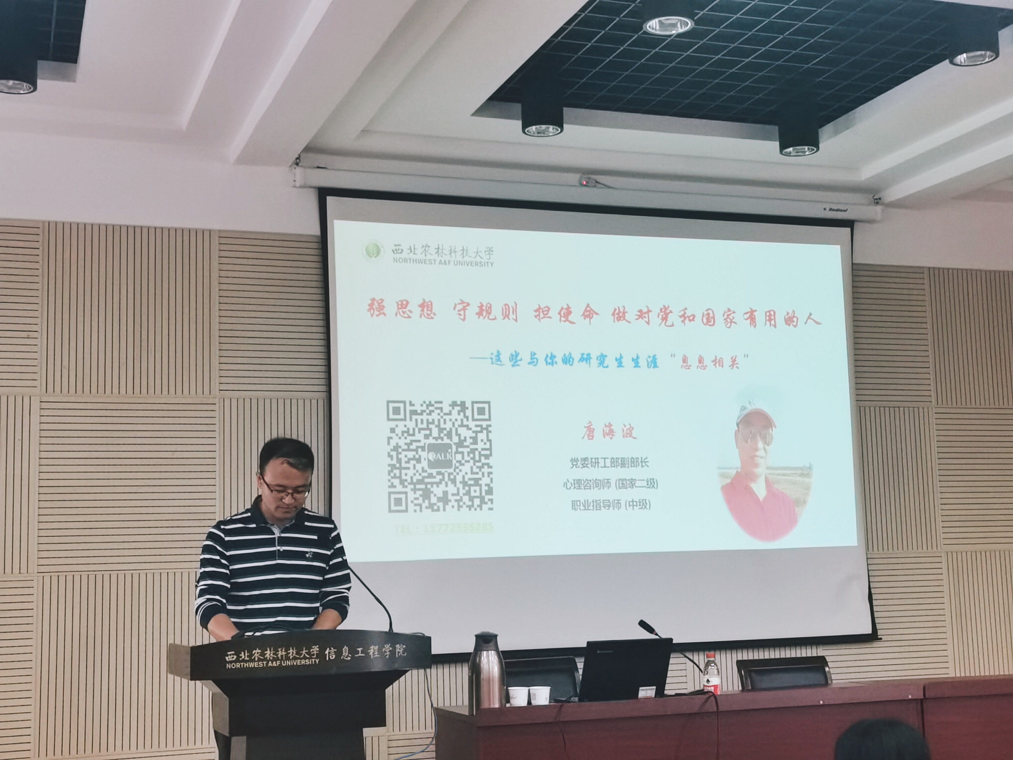 教育会上,唐老师对为同学们做了关于研究生管理规定、违纪处分规定、学籍管理办法等政策的介绍与解读,他讲到,研究生管理相对于本科生管理来说方法模式有所变化,细节要求有所不同,但其核心都是做好学生的思想政治引领。唐部长结合学生的发展需求,从思想引领、学习方式方法的变通、本科生活与科研生活的切换,给全体研究生新生提出了多条切实有效的建议。为帮助学生快速了解并融入适应科研生活,唐老师列举了多个事例,警示同学们守住底线原则,避开生涯雷区。大会历时两个小时,帮助新生系统的认识研究生科研生活的思想指导框架,鼓励新生脚踏实地,严谨治学,创新科研,树立良好的学习、科研及生活观念,为接下来培养自身专业素养、塑造良好科研氛围、加强学校双一流建设奠定坚实基础。如翟老师所说,志存高远、锐意进取、不忘初心、无畏奋斗,方能乘风破浪,成为祖国宏伟蓝图的栋梁之才。相信在全院师生的共同努力下,信工人定会培养出一批又一批德才兼备的高层次人才,源源不断地为实现中华民族伟大复兴的中国梦输送新鲜血液。