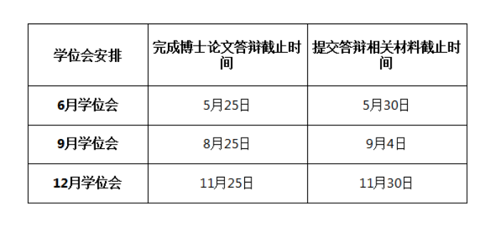 学术型博士研究生以导师团队为单位组织答辩,各学科点至少提前3天向研究生办报答辩秘书人选,由研究生办在系统中设置答辩秘书,答辩秘书提前3天在系统中发布答辩公告。3次学位会论文答辩及提交答辩相关材料截止时间见下表: