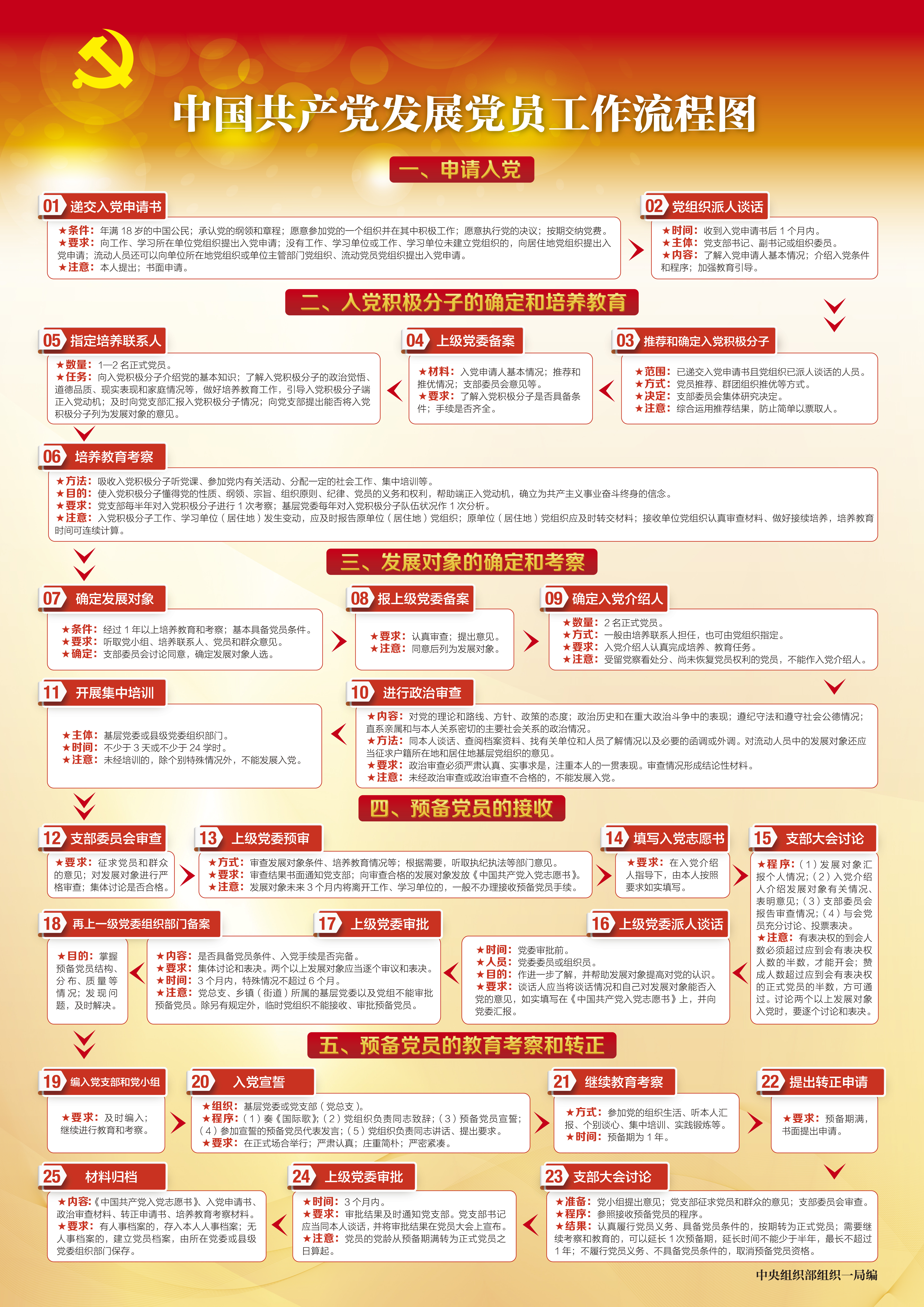 (二)核程序。重点查看党员档案,从申请入党、入党积极分子的确定和培养教育、发展对象的确定和考察、预备党员的接收、预备党员的教育考察和转正等5个阶段,确保发展程序到位。