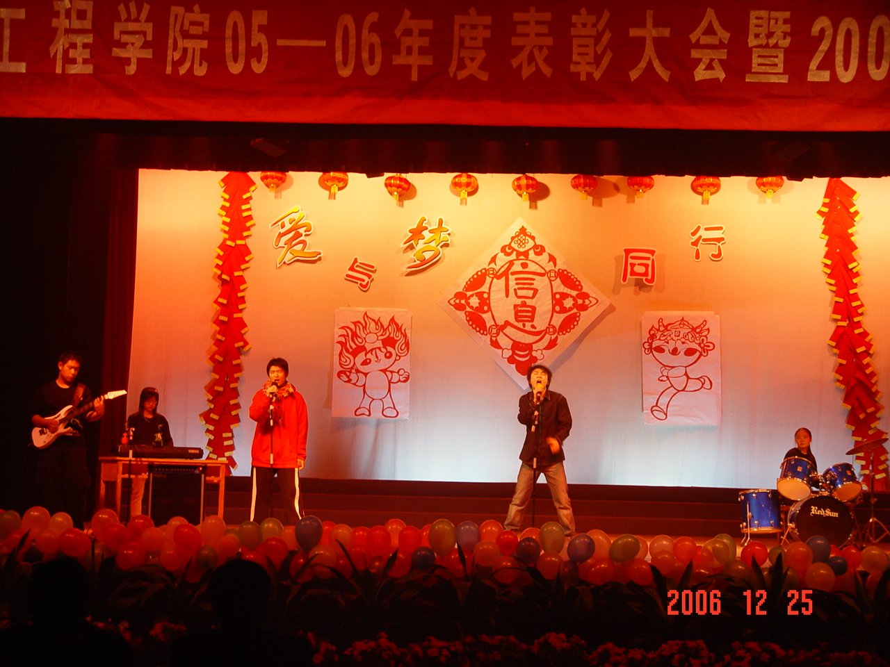 在激情四射的音乐中,赛马会六合彩 的轮滑爱好者们为全院师生展示了他们精彩而娴熟的轮滑技巧;赛马会六合彩 自己乐队的一首《超越自己》,调动了师生的热情;现代版的《唐伯虎点秋香》的幽默和风趣,带来了阵阵笑语和掌声;舞蹈《奔驰在草原上》让大家领略到大草原的豪迈与奔放并把晚会推向了高潮。最后晚会在《就在今天》的歌声中拉下帷幕,取得圆满成功。