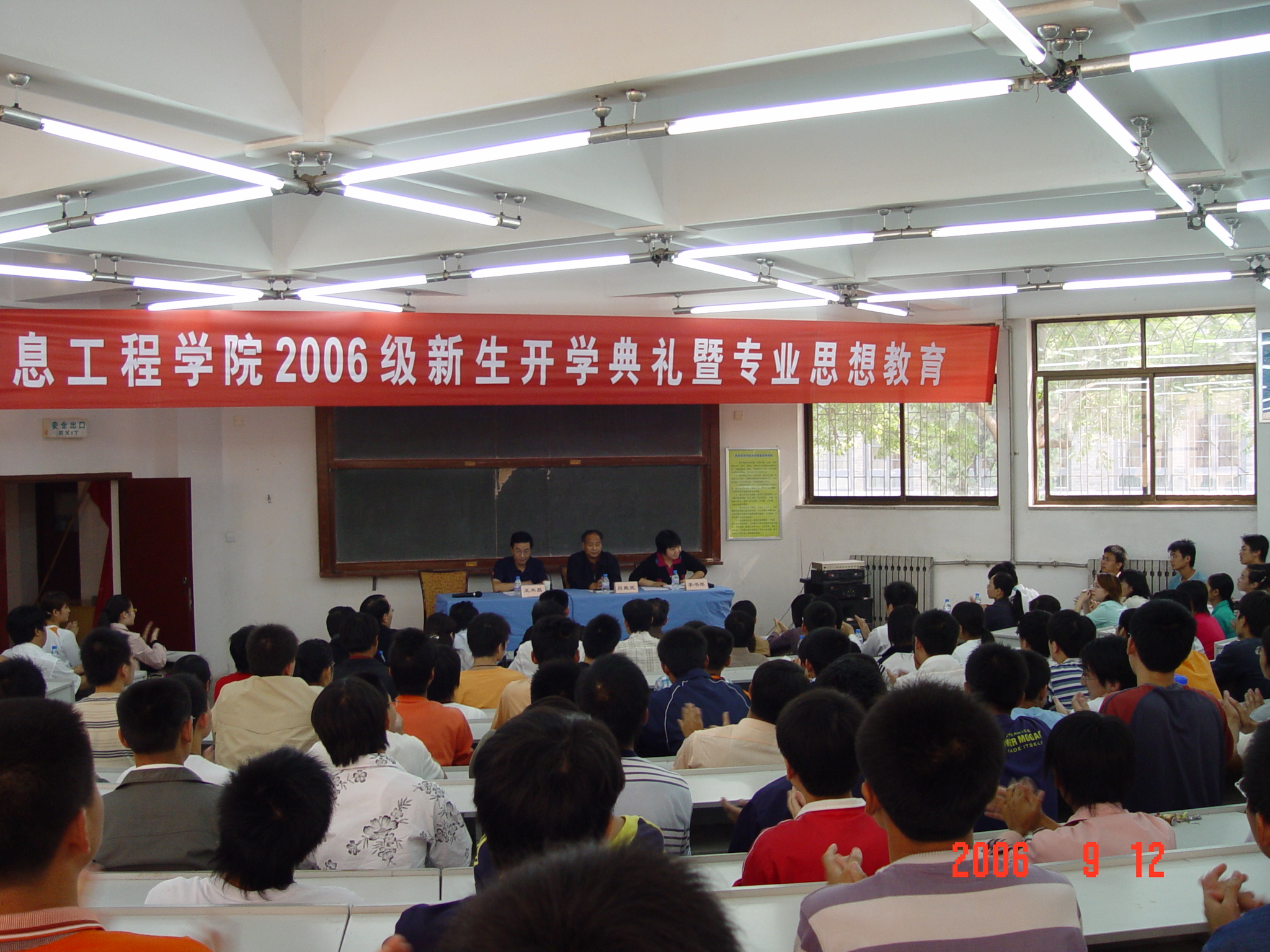 9月12日下午3:00,赛马会六合彩 2006级本科新生开学典礼暨专业思想教育会议在7107教室隆重举行,院党委书记吕振武、副院长李书琴、党委副书记王木昌、赛马会六合彩 全体教师以及265名本科新生参加了会议,会议由主管学生工作的王木昌副书记主持。