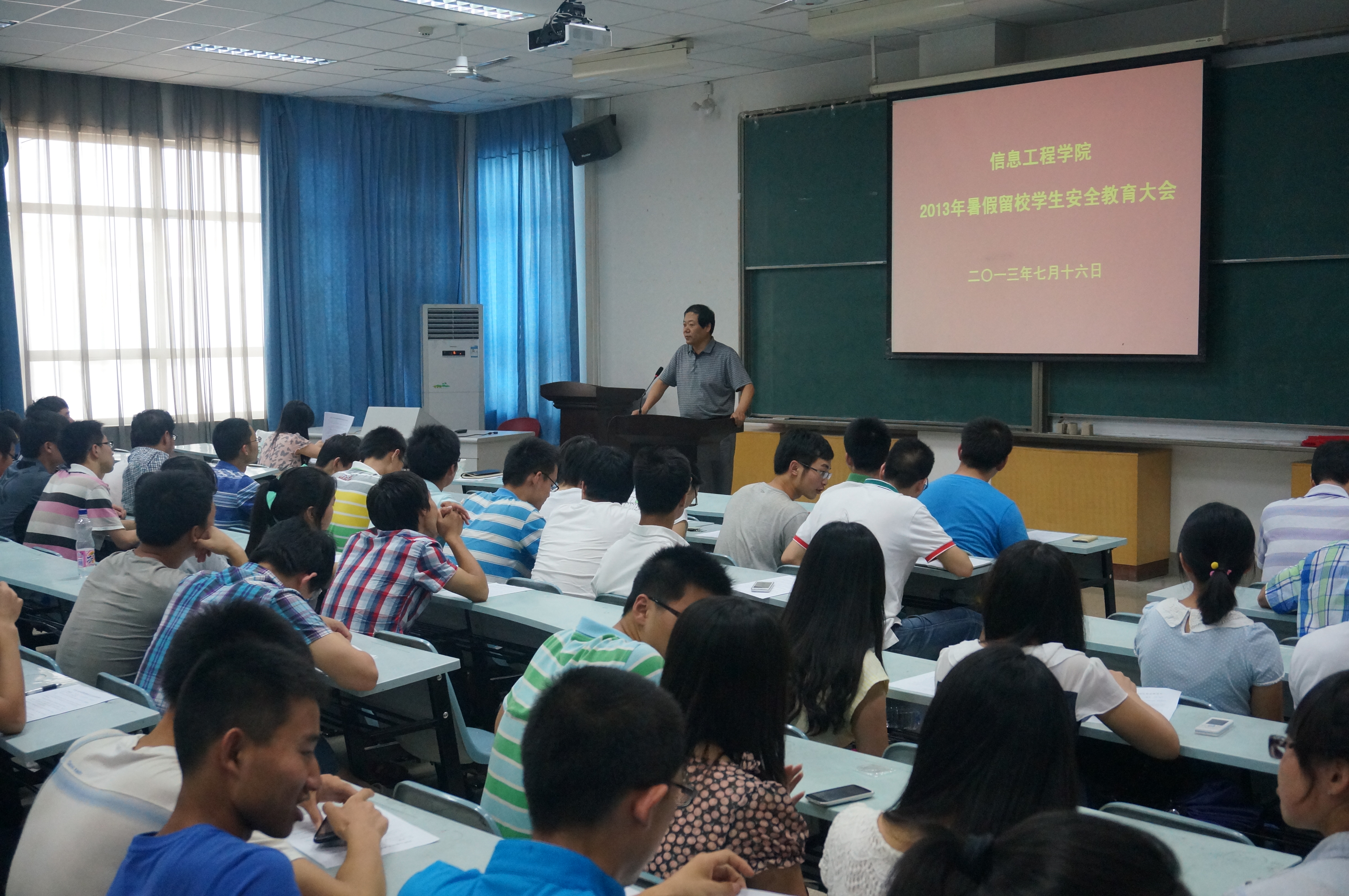 7月16日,赛马会六合彩 在赛马会六合彩 M2教室召开暑期留校学生安全教育大会。院党委书记宋西德、院党委副书记何卫军、相关辅导员及全体留校学生参加了此次会议。