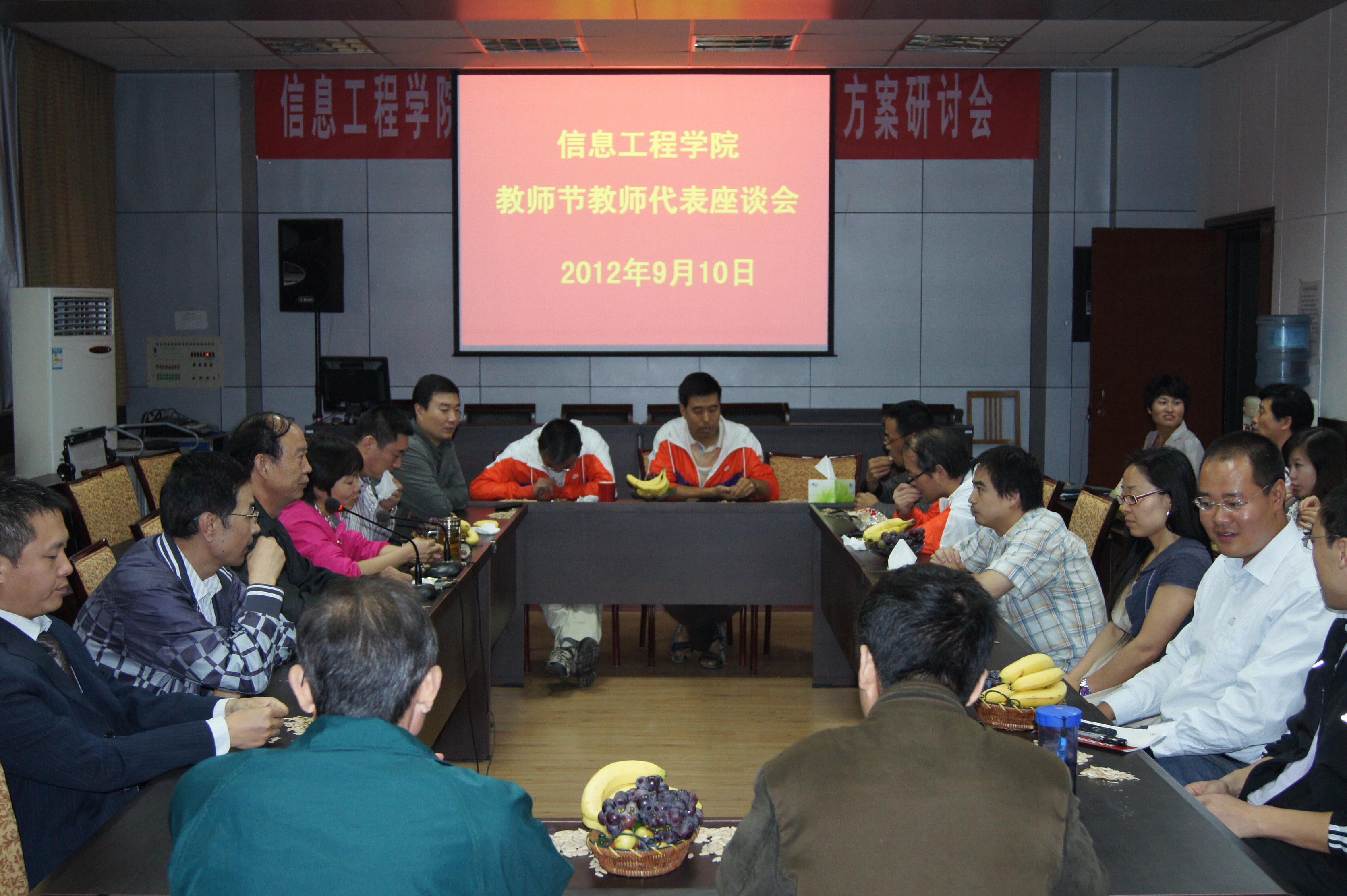 9月10日,在我国第28个教师节来临之际,信息赛马会六合彩 在二层多功能会议室召开座谈会。邀请赛马会六合彩 部分教师代表参加此会,交流沟通,共同庆贺全体教师的节日。