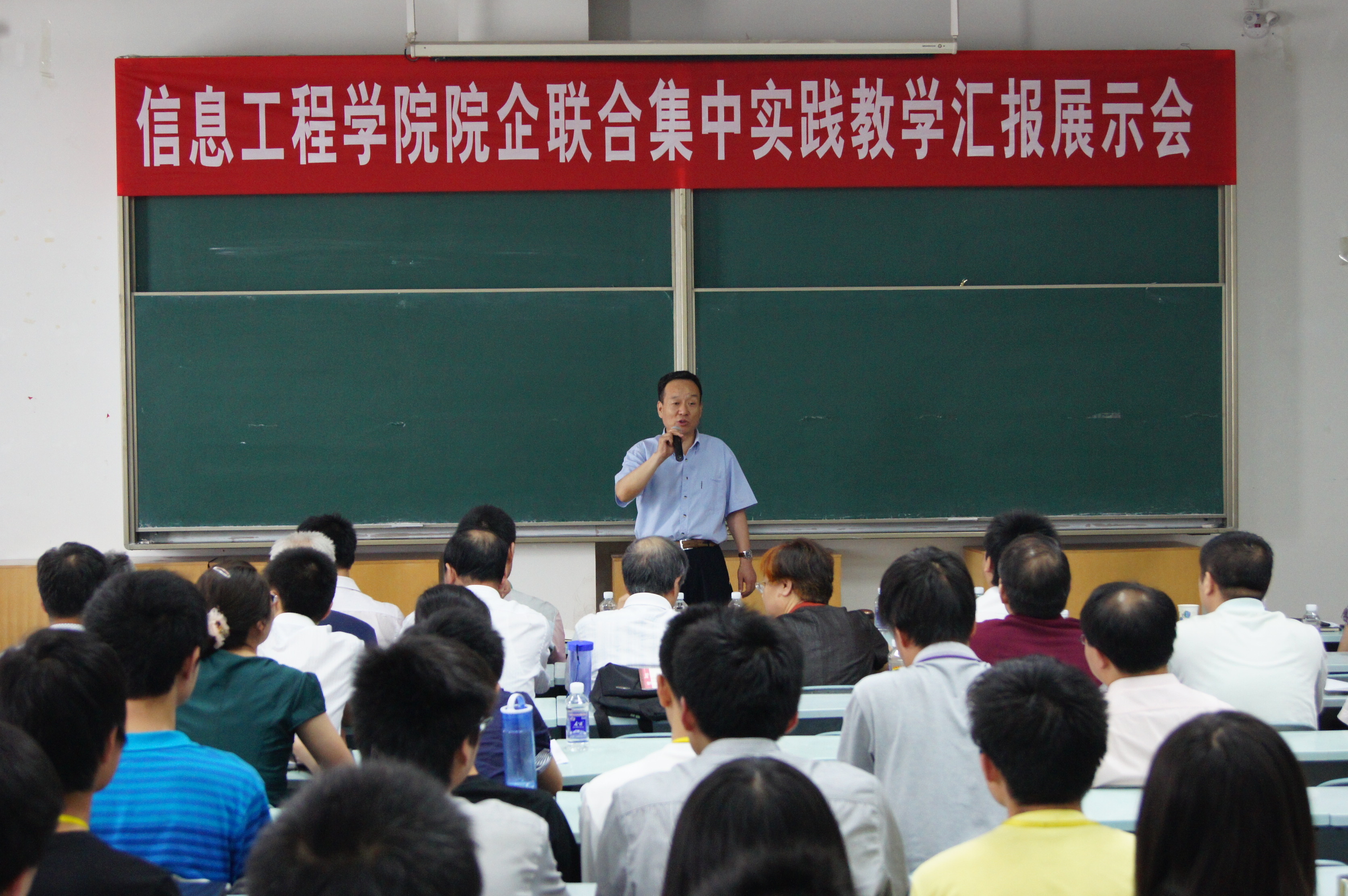 信息赛马会六合彩 院企联合集中实践教学汇报展示会于7月1日在赛马会六合彩 多媒体教室召开。常务副校长赵忠、教务处负责人出席会议。赛马会六合彩 领导、院教学督导组、企业一线兼职实训指导教师、院教学委员会及赛马会六合彩 配备实训指导教师参加了会议。会议分两个阶段进行,第一阶段为项目组实训成果汇报展示,第二阶段为座谈交流。