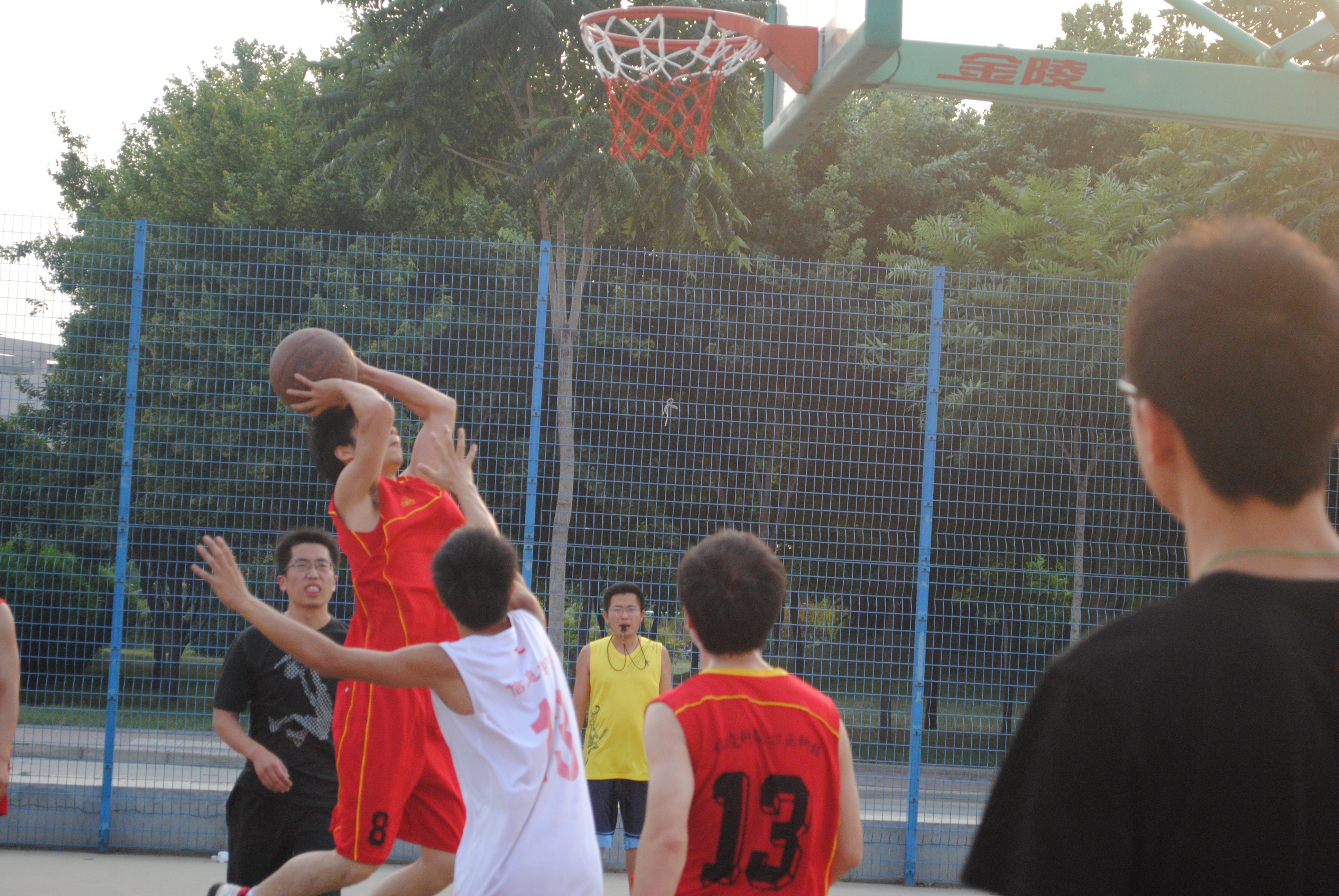 虽然天气很热,但丝毫没有影响双方队员的参赛热情。随着比赛的哨声响起,双方开始了激烈的拼抢。研究生凭着青春活力和充沛体力展开了一轮轮猛烈的进攻,老师们沉着应对,谨慎回防,一抓住机会便进行有效地反击,双方你来我往,相执不下。虽然老师们在体力和跑动上不及这群精力充沛的学生,但他们在经验和意志上却毫不逊色,在比分落后的情况下仍坚持不懈,冷静应战,最终反败为胜。