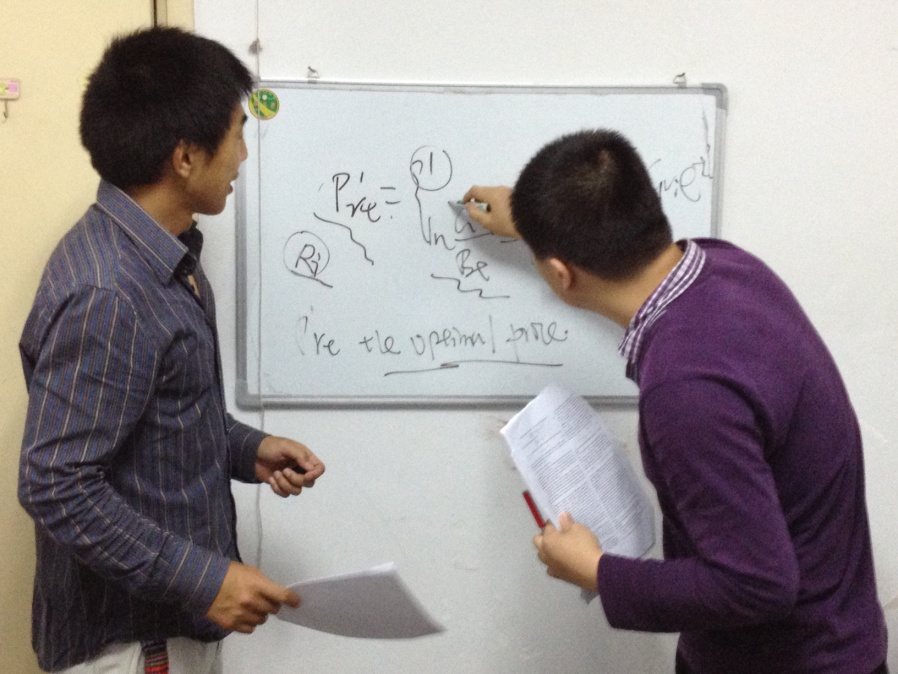 陈鸿龙博士与杨黎斌老师对实验结果进行论证