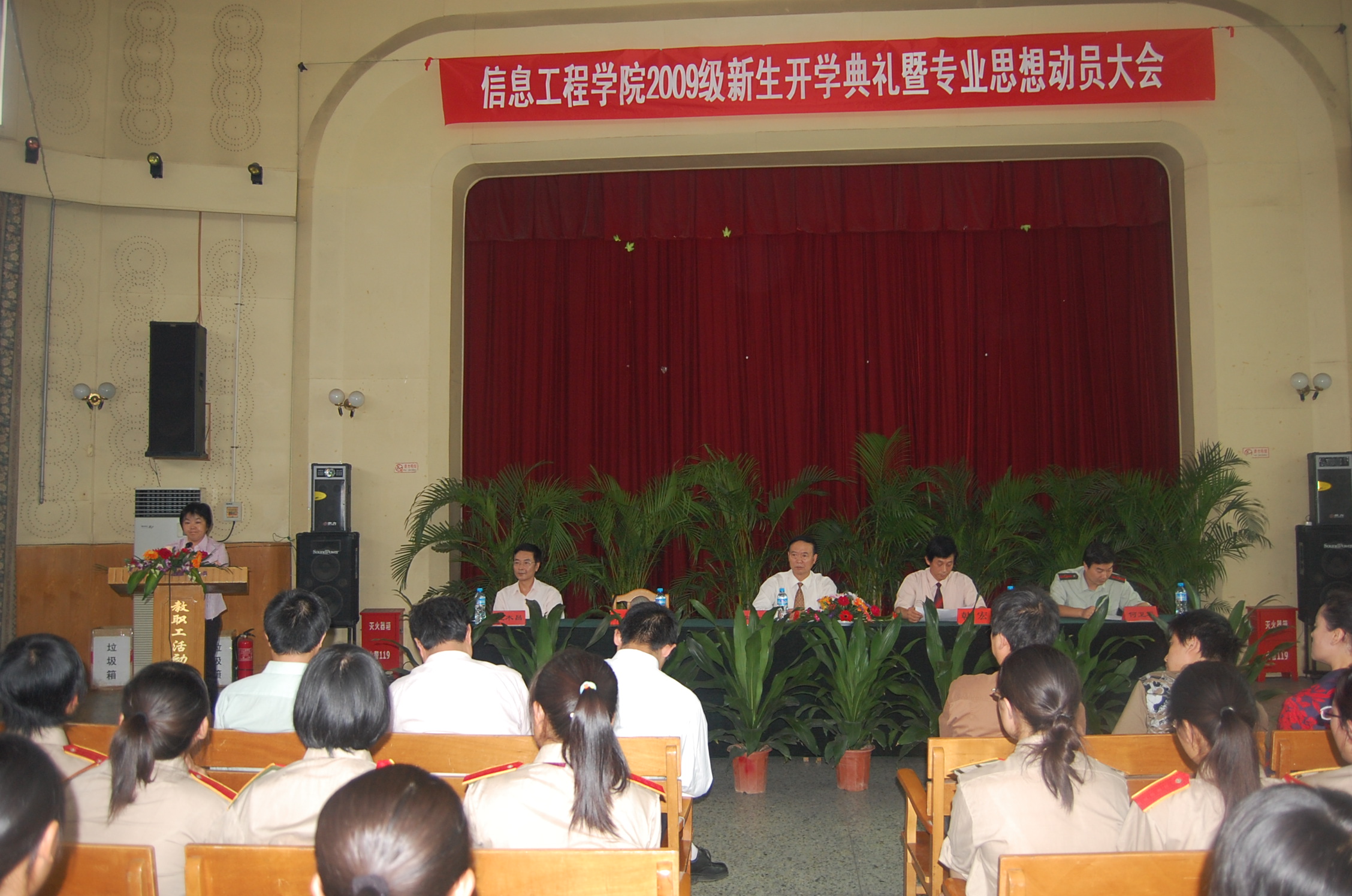 在李秀厅隆重举行2009级新生开学典礼暨专业思想教育大会,全体院领导、副教授以上职称教师、各系部主任、综合办全体人员、教师代表、新生班主任以及271名新生参加了会议,大会由王木昌副院长主持。