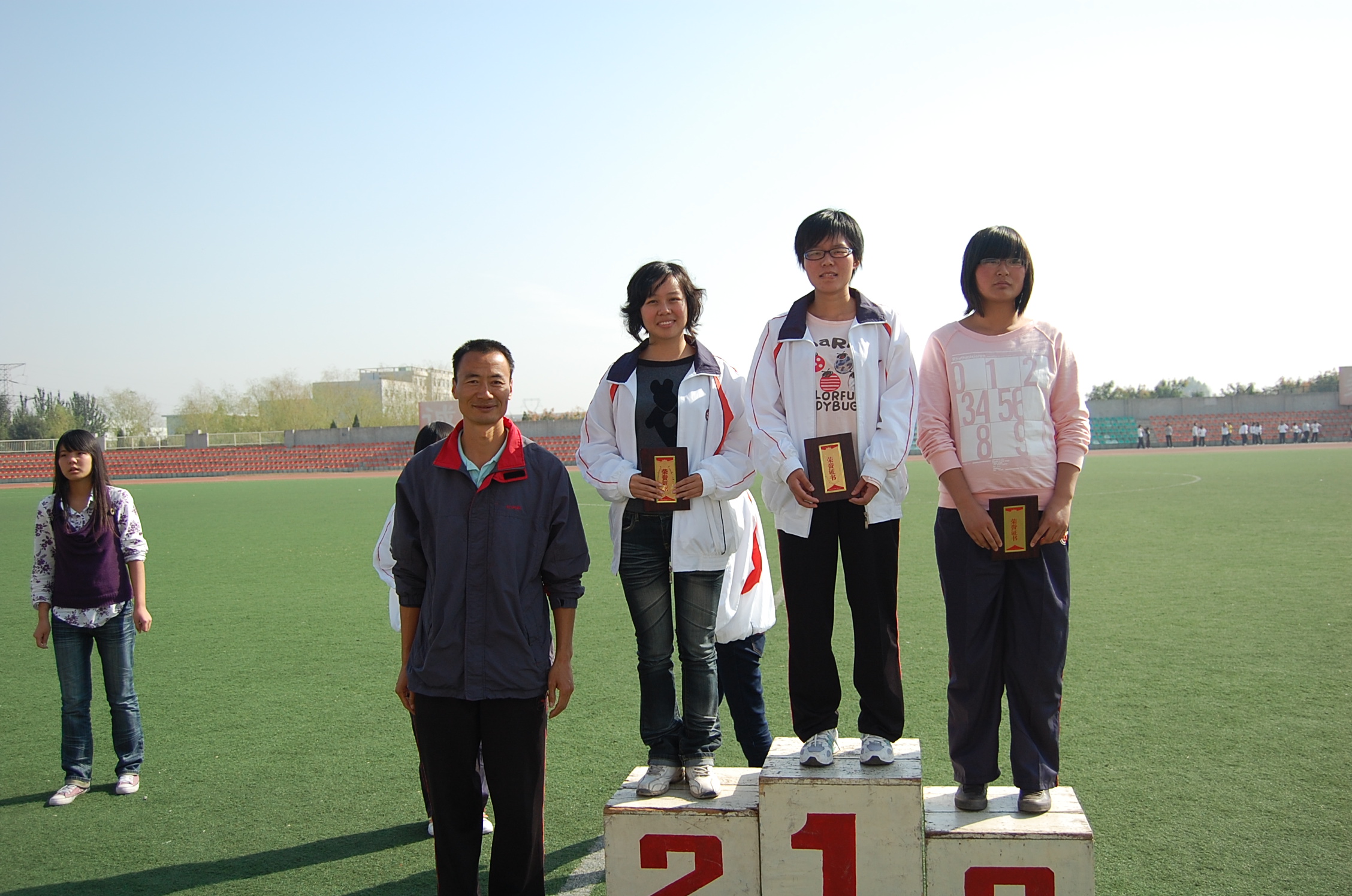在校运动会上取得的优异成绩,鼓励参赛同学在比赛中全力以赴,来年能代表赛马会六合彩