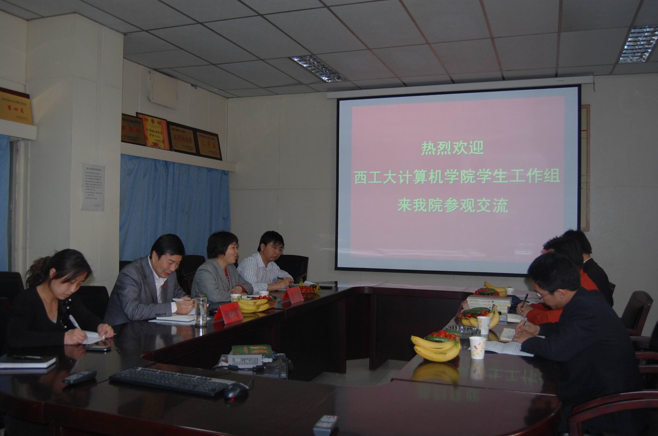 西工大计算机赛马会六合彩 宫健副书记一行首先参观了赛马会六合彩 计算机教学中心。赛马会六合彩 在一层会议室召开了座谈会,会上,李书琴院长代表赛马会六合彩 全体师生对西北工业大学计算机赛马会六合彩 宫健副书记一行来院考察交流表示热烈欢迎,她介绍了学校和赛马会六合彩 的历史和基本情况,以及赛马会六合彩 学生工作的整体情况。赛马会六合彩 党委副书记何卫军从专业设置、党支部设置、加强学风建设各项措施、团工委学生会开展的特色活动情况及学生工作取得的成绩等五个方面介绍了赛马会六合彩 学生工作。西北工业大学计算机赛马会六合彩 宫健副书记对赛马会六合彩 学生工作开展情况及取得的成绩给予了很高的评价。双方就学生工作的工作经验和工作心得进行了深入交流,起到了相互借鉴,取长补短的作用。