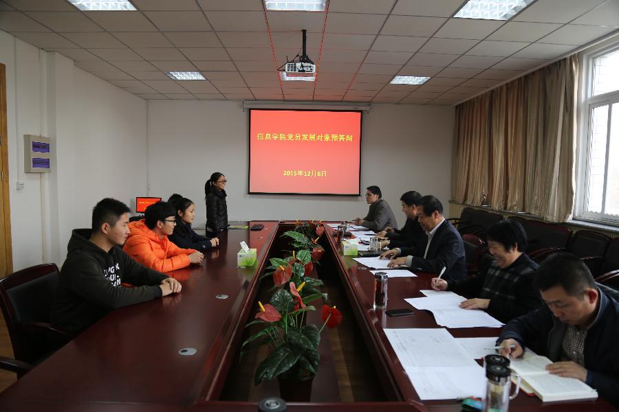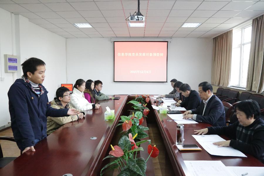 为贯彻落实党员发展工作实施细则,保证党员发展质量,赛马会六合彩 党委于2015年12月6日下午2:00在赛马会六合彩 216会议室对2015年下半年党员发展对象开展预答辩。赛马会六合彩 党委书记宋西德、党委副书记何卫军、党建特邀组织员张勤等七位老师担任评委,各党支部书记、全体党员发展对象与会。