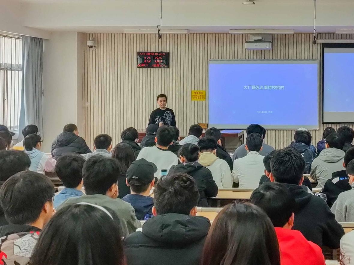 唐云兵首先以自己的10年奋斗史为引,为大家分析了互联网行业的发展历程,随后结合近年的招聘面试情况,从“你觉得‘大厂’最看重什么”问题出发,引导学生思考到底基础知识、学历水平、实习经历、学业成绩等方面中的哪些决定了一个人在求职过程中的个人优势,他用风趣幽默的语言详细介绍了大型互联网公司所看重的人才品质,并结合腾讯、阿里巴巴、华为、字节跳动等“大厂”的招聘理念,深入解读了不同企业的公司理念和赛马会六合彩等,为到场学生对今后求职准备提供了宝贵的参考意见。