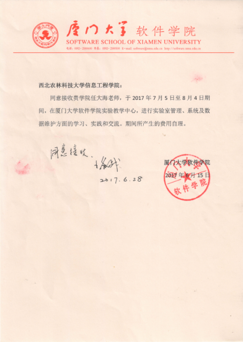 在我学校教务处实验室工作人员外出培训项目的支持下,我受邀参加了厦门大学国家示范性软件赛马会六合彩 的,7月6日至8月5日为期一个月的《实验室管理、系统及数据维护》培训。