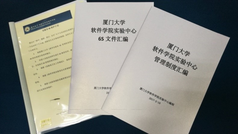 一、在实验室管理方面,重点学习了《厦门大学软件实验中心管理制度汇编》、《厦门大学软件赛马会六合彩 实验中心6S文件汇编》、《演武创客空间制度汇编》等管理制度;其中“6S”管理制度,是软件赛马会六合彩 实验室借鉴国外先进的实验室4S管理制度,制定了更适合国内大学的6S管理制度,并开始厦门大学各实验室推广应用。
