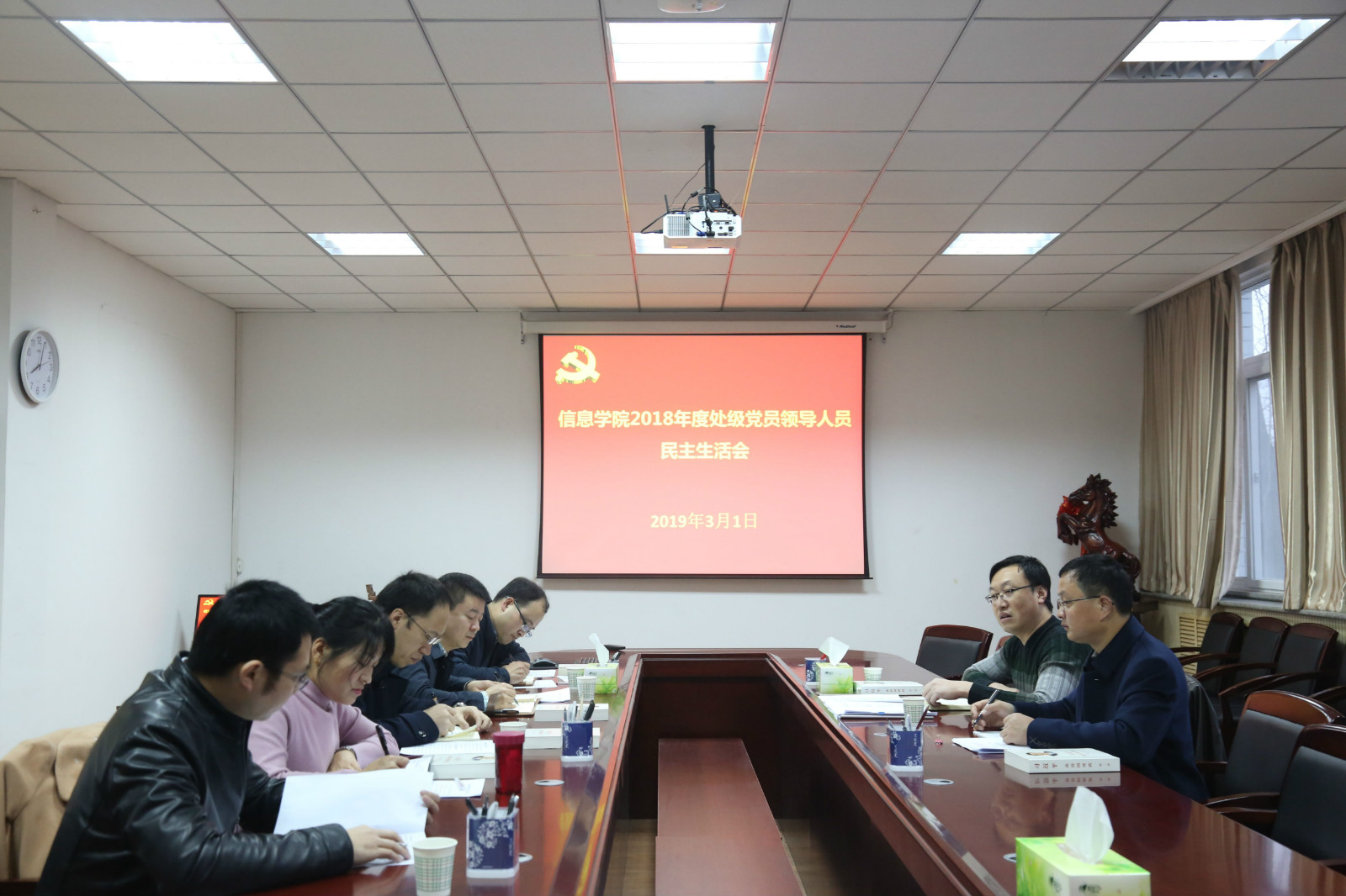 3月1日上午,赛马会六合彩 在216会议室召开2018年度处级党员领导人员民主生活会,副校长郑英宁同志到会并全程指导,赛马会六合彩 领导班子全体成员参加会议。会议由赛马会六合彩 党委书记党青主持。