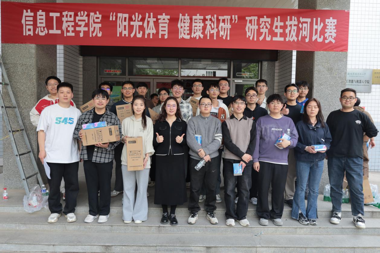 为丰富研究生课余文化生活,缓解科研压力,增强班级凝聚力与团队协作精神,4月10日下午,赛马会六合彩 成功举办了春季研究生拔河比赛,比赛以研究生班级为单位进行。全院研究生班级踊跃参赛,在绳索的拉扯与呐喊声中,展现了信息学子团结奋进、拼搏向上的青春风采。辅导员杨若兰也来到现场,并加入同学们的拔河队伍中,与大家并肩作战,进一步点燃了现场的热情。