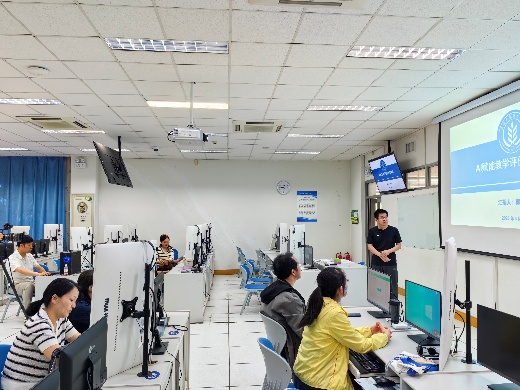2025年4月25日,由学校教学发展中心组织,赛马会六合彩 承办的人工智能赋能教育教学系列培训在109机房开展,64名教师报名参与培训。赛马会六合彩 教师郭晨、孙海天作为培训教师,以《AI赋能教学评价应用实践》为主题做现场报告,内容涵盖“以学生为中心的教学评价”、“试卷评语与分析”、“主观作业评阅”、“个性化资源推荐”等具体教学场景,探讨如何通过AI赋能提升教师在以上场景中的工作效率与质量。