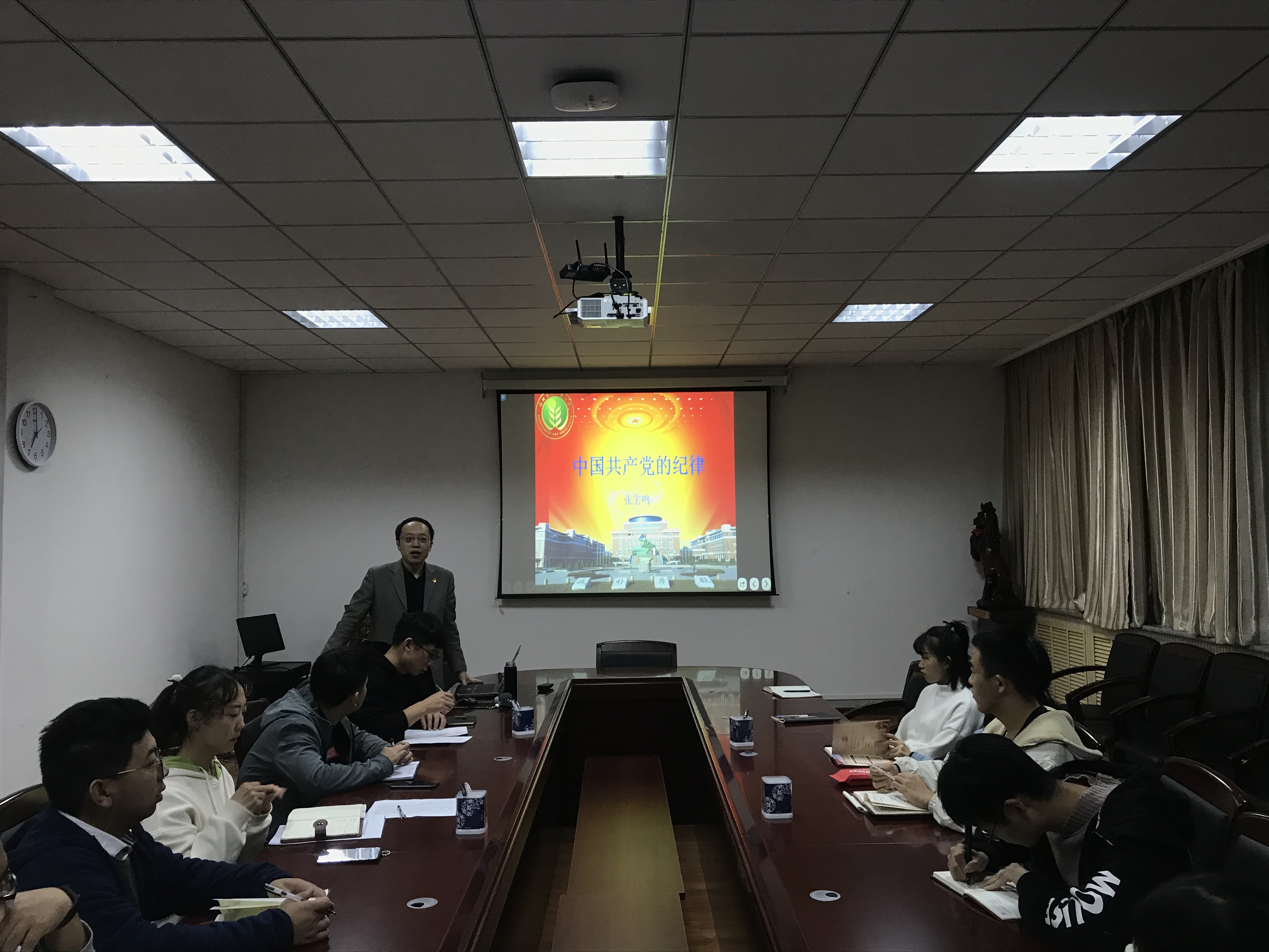 10月29日晚,副院长张宏鸣同志作为研究生第一党支部联系人,以“中国共产党的纪律”为主题为研究生第一党支部全体党员同志、发展对象、入党积极分子上了一堂发人深省的党课。