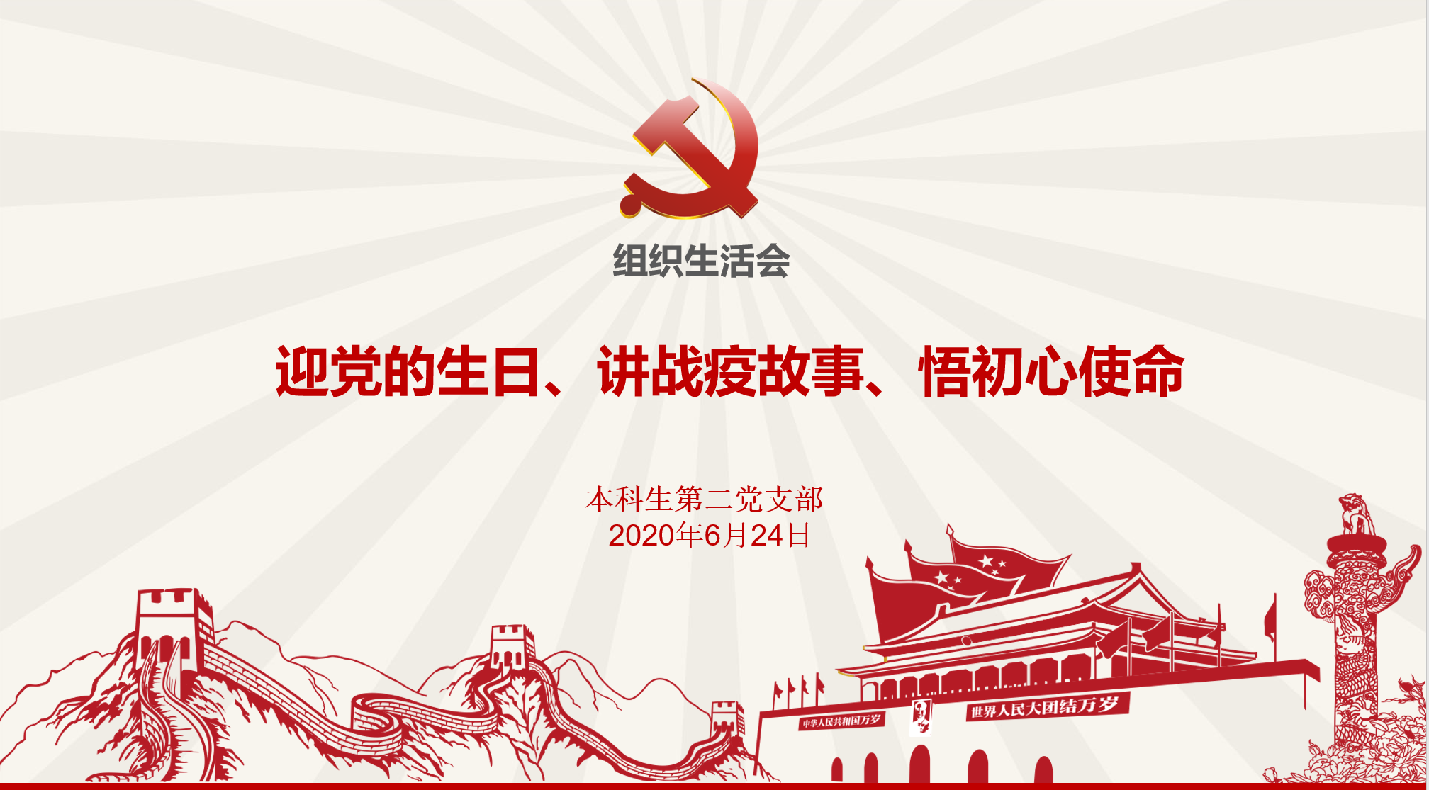 为了在常态化疫情防控工作中继续引导广大学生党员强化服务意识,讲好战疫故事,学习榜样力量,敢于担当作为,切实发挥先锋模范作用,6月24日上午,赛马会六合彩 本科生第二党支部通过“腾讯会议”平台开展了“迎接党的生日、讲战疫故事、悟初心使命”专题组织生活会,支部书记倪玲同志主持会议,全体党员参会。