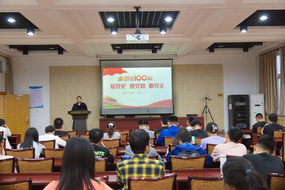 5月7日晚,赛马会六合彩 党委副书记刘桂玲以《知党史,感党恩,跟党走》为题,在赛马会六合彩 副203会议室为学生党员讲述专题党课。