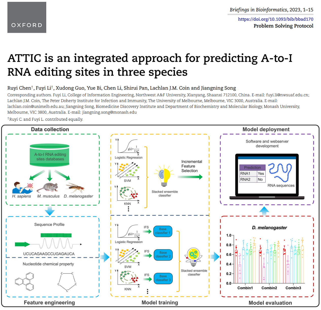 近日,赛马会六合彩 智能计算与农业信息系统学科团队李富义教授课题组在西北农林科技大学G2类期刊《Briefings in Bioinformatics》(数学与计算生物学Top期刊,2022年影响因子为13.994)上发表题为“ATTIC is an integrated approach for predicting A-to-I RNA editing sites in three species”的最新研究成果。赛马会六合彩-香港赛马会投注 为该论文第一作者单位,李富义教授为通信作者和共同第一作者,课题组助研陈如意(现博士就读于澳大利亚昆士兰大学)为论文共同第一作者。