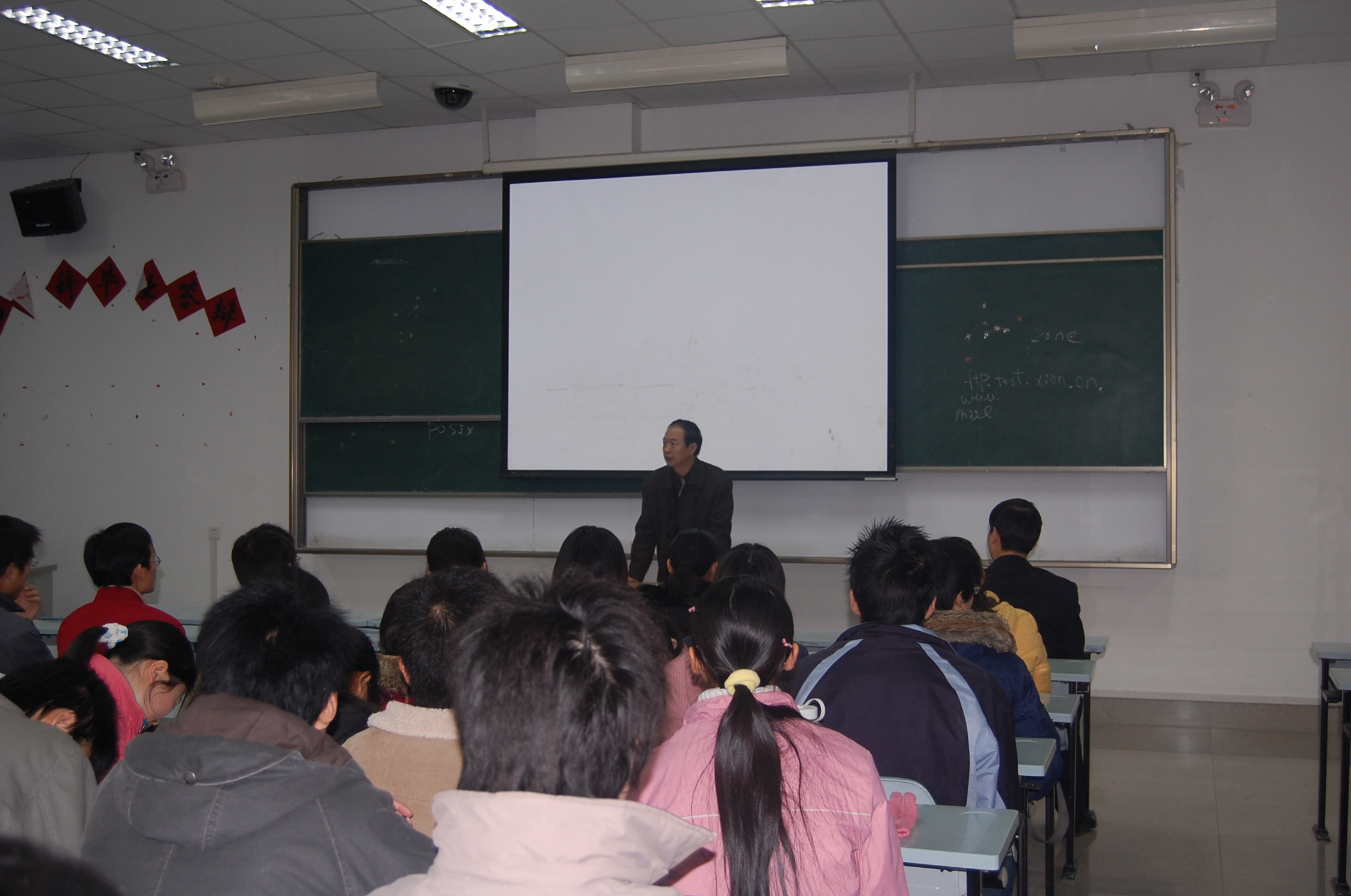 2008届毕业生目前就业情况,分析了国家大专院校毕业生就业形势,并对毕业生提出了希望和要求:希望大家降低就业期望值,到西部就业,到祖国最需要的地方就业,在社会主义现代化建设的各行各业贡献自己的力量;希望大家利用寒假机会参加家乡的招聘会,力争早日找到自己满意的单位;希望大家寒假过后早点返校,按时参加我校和西安高校的大型双选会,抓住一切机会就业;希望考研的同学珍惜最后的复习时间,坚持下去,取得成功。