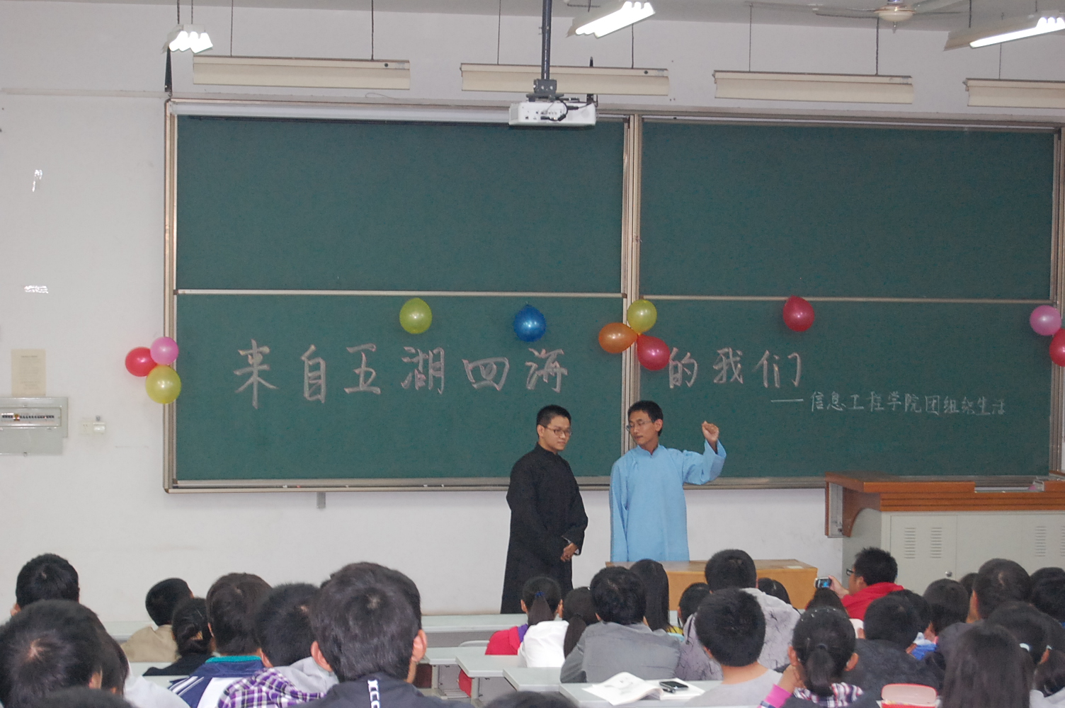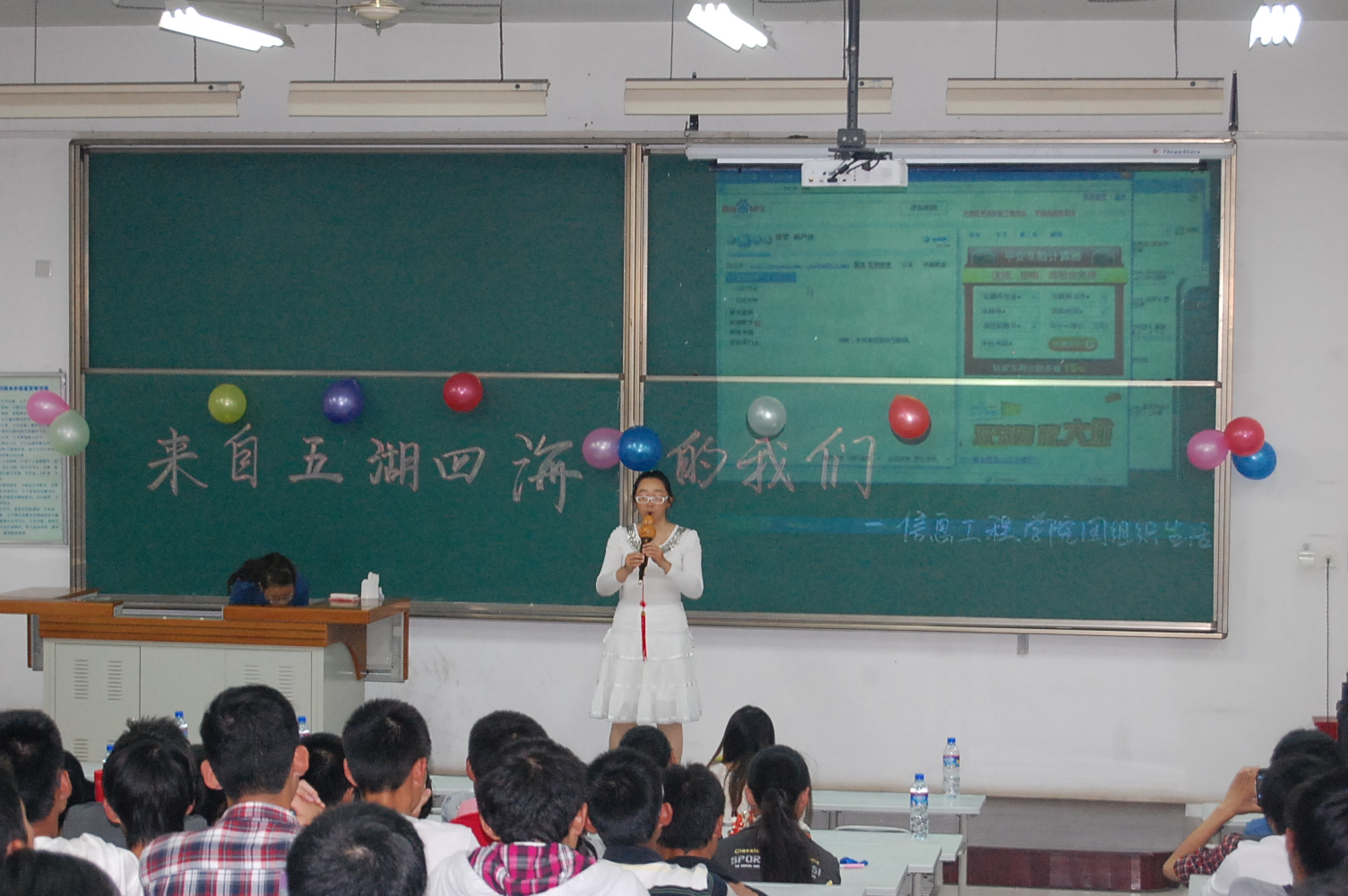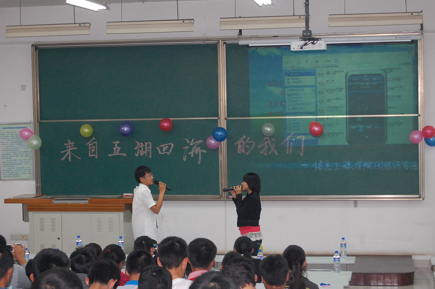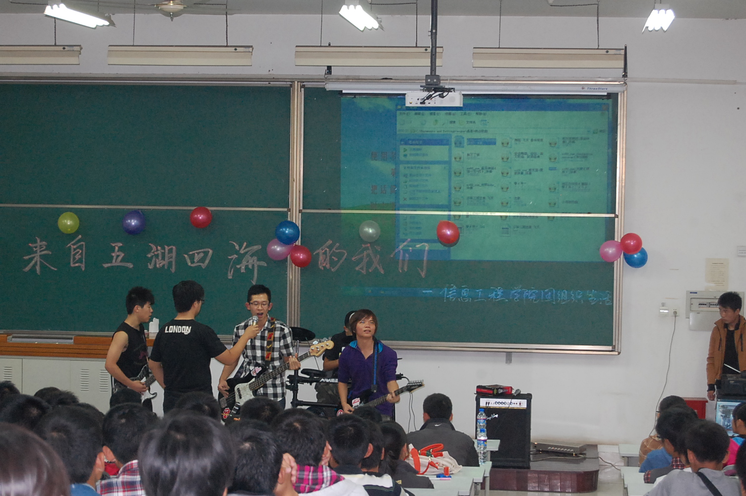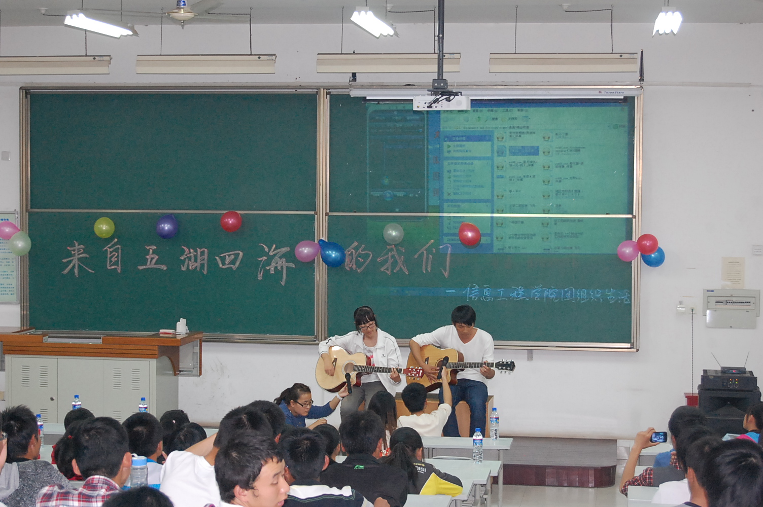 9月25日晚7点半,信息赛马会六合彩 在8T阶梯教室举行了2012级新生迎新晚会。团工委书记桂恺、辅导员倪玲、仵亚伟、郭峰来到活动现场观看晚会。