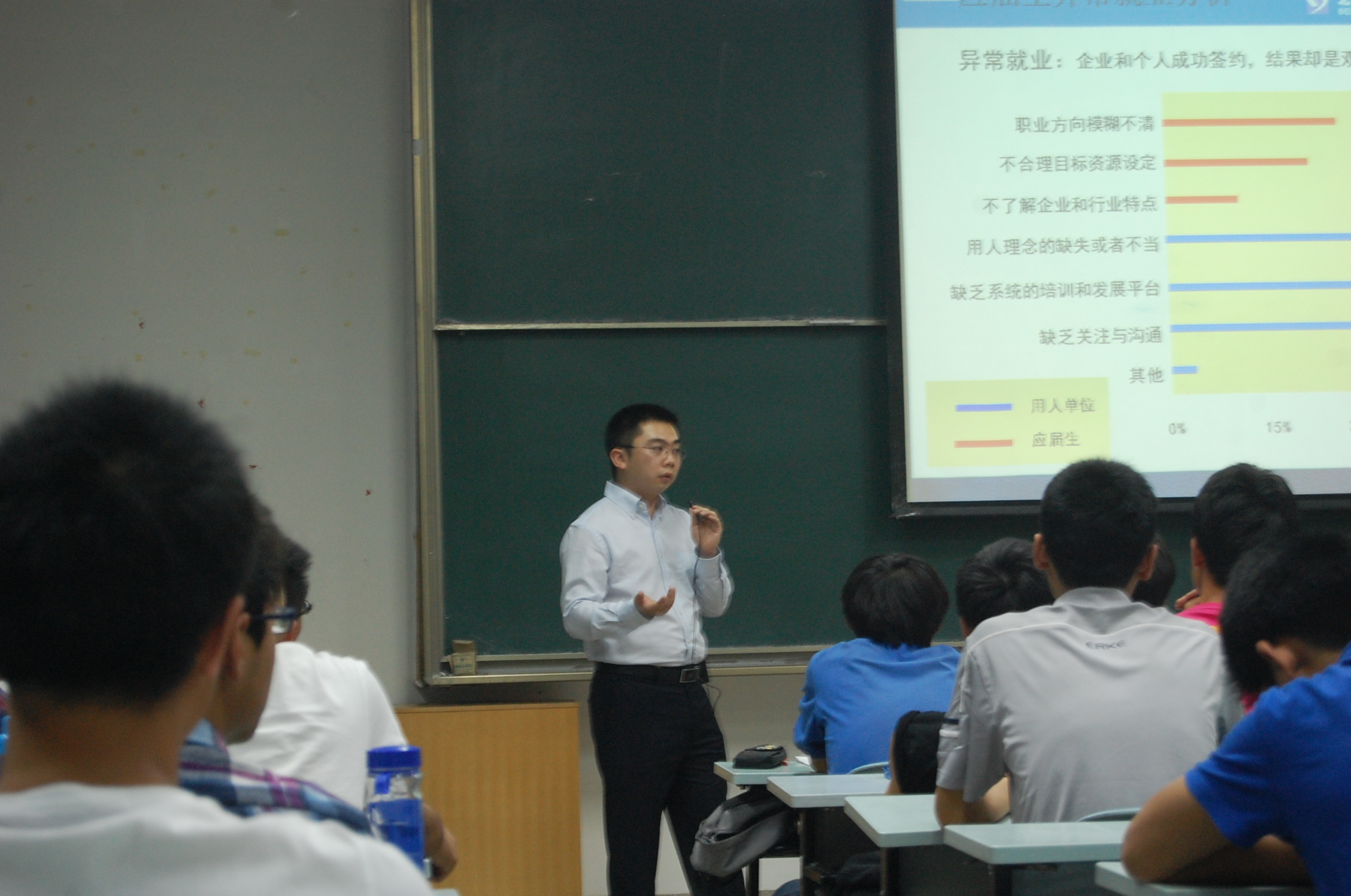2012年5月15日20点,赛马会六合彩 邀请四川华迪信息技术有限公司研发部主任王强主任和北京利达智通信息技术有限公司项目经理李海湜经理在M2教室举办了针对就业的讲座。