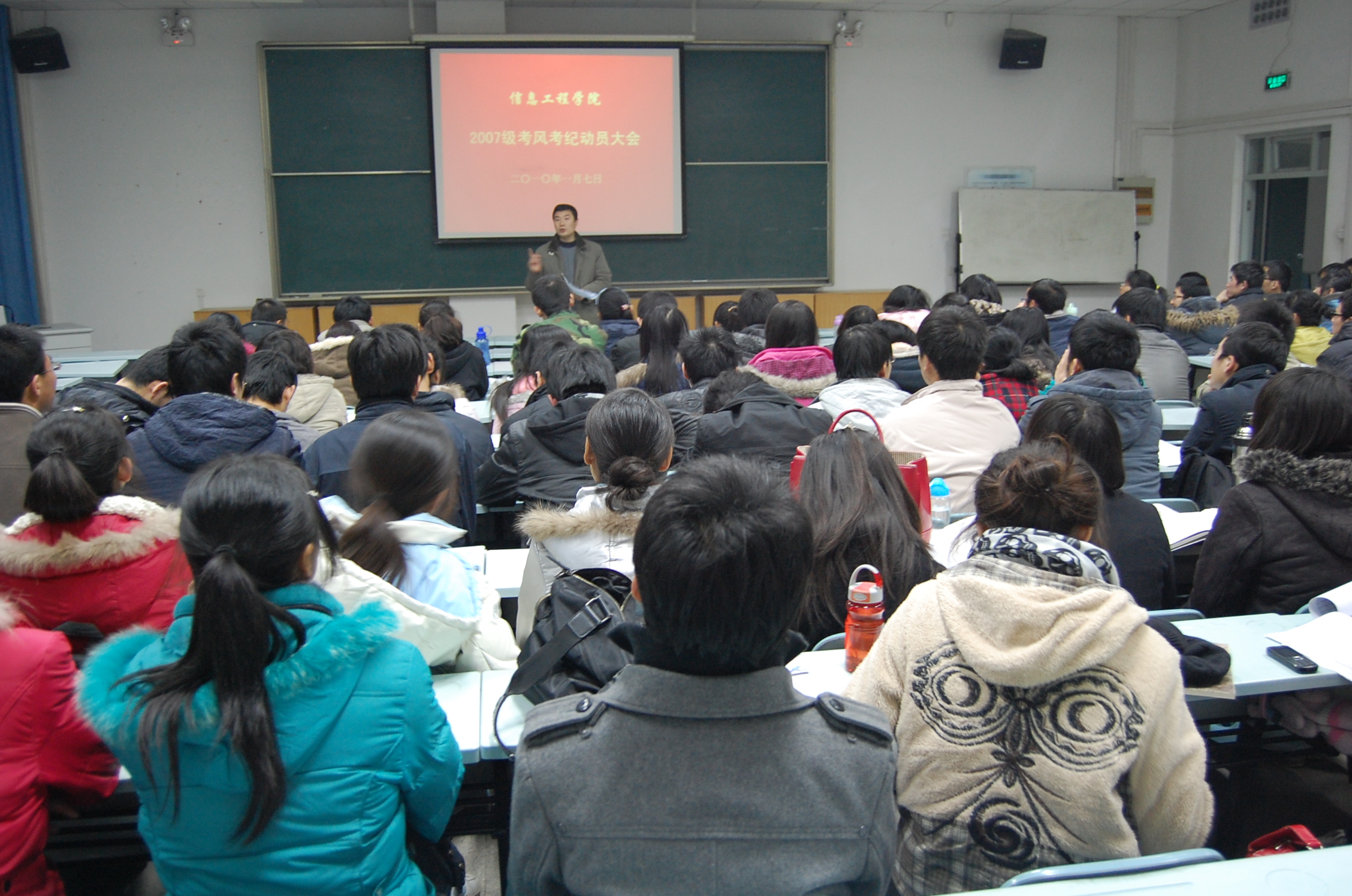 为落实学校加强考风考纪工作会议精神,进一步强化赛马会六合彩 学生诚信意识,严肃学生考试纪律,杜绝学生考试违纪、作弊现象,根据赛马会六合彩 加强考风考纪工作会议安排,1月7日下午和晚上,赛马会六合彩 分别对2007级和2009级学生分年级召开了加强考风考纪动员大会。赛马会六合彩 党委书记樊世明和党委副书记何卫军分别就诚信考试做了动员讲话和具体安排。全体辅导员和部分班主任参加了动员大会。