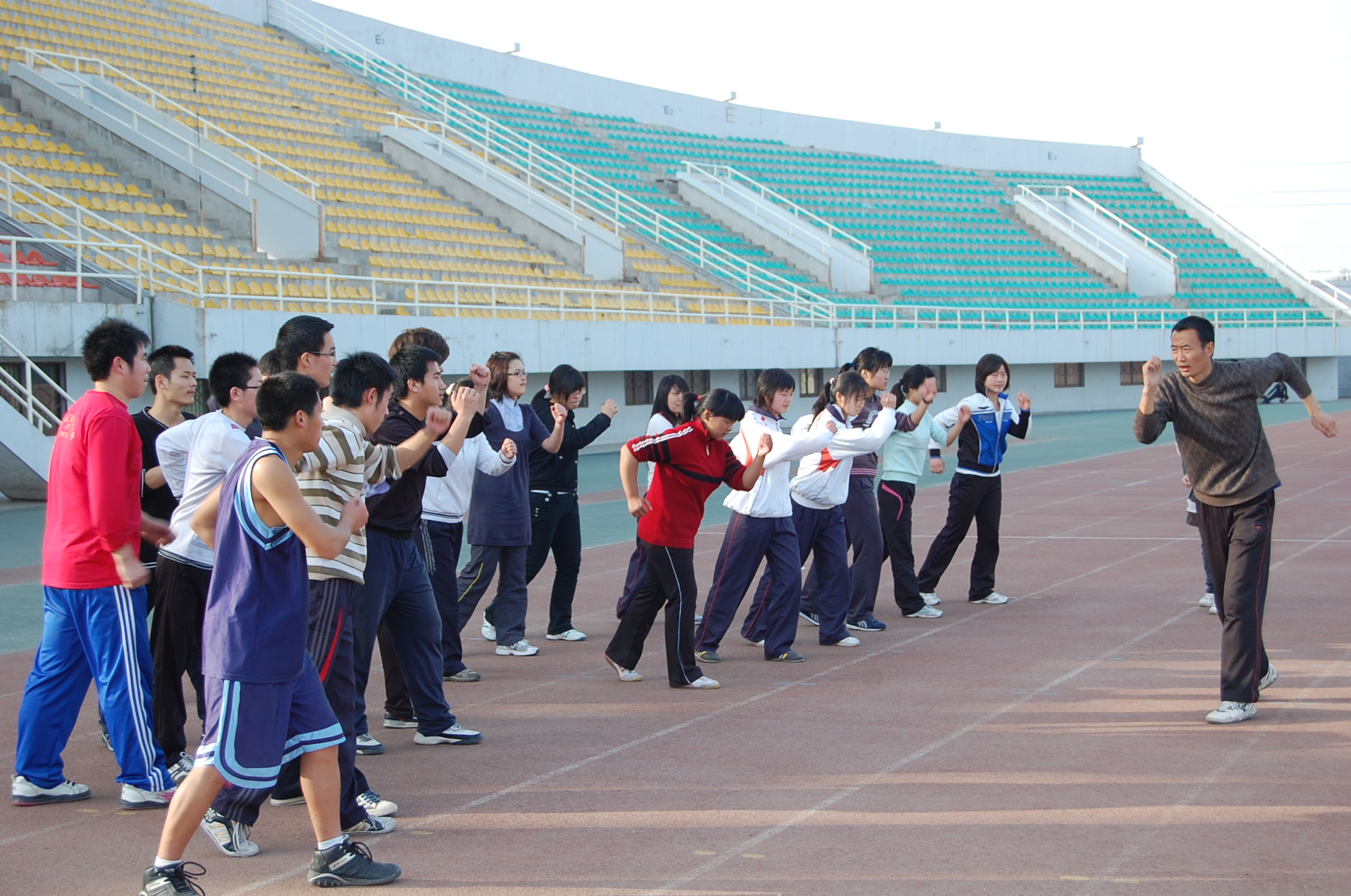 党委副书记何卫军带领辅导员前往北校区田径场看望了正在备战校春季运动会的体育辅导员杜养军老师和学生运动员们。